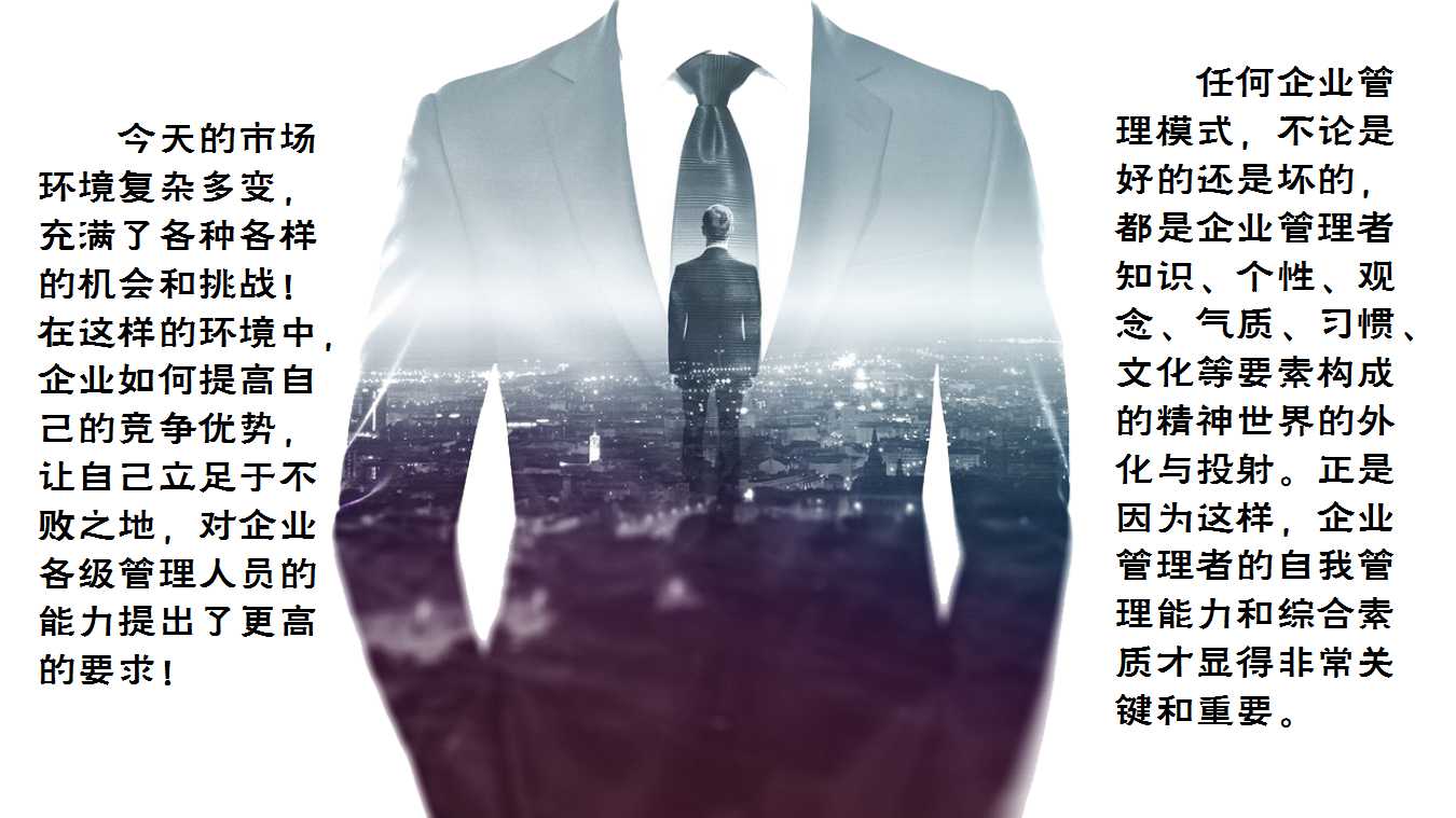 今天的市場(chǎng)環(huán)境復(fù)雜多變,充滿了各種各樣的機(jī)會(huì)和挑戰(zhàn)!在這樣的環(huán)境中,企業(yè)如何提高自己的競(jìng)爭(zhēng)優(yōu)勢(shì),讓自己立足于不敗之地,對(duì)企業(yè)各級(jí)管理人員的能力提出了更高的要求!